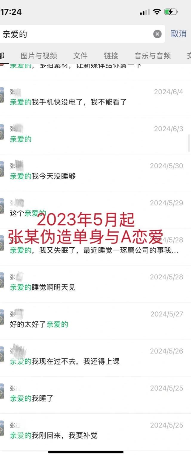 张某一边跟他老婆求和,一边跟A恋爱,一边勾搭其他学员妈妈,甚至跑到外地寻欢。